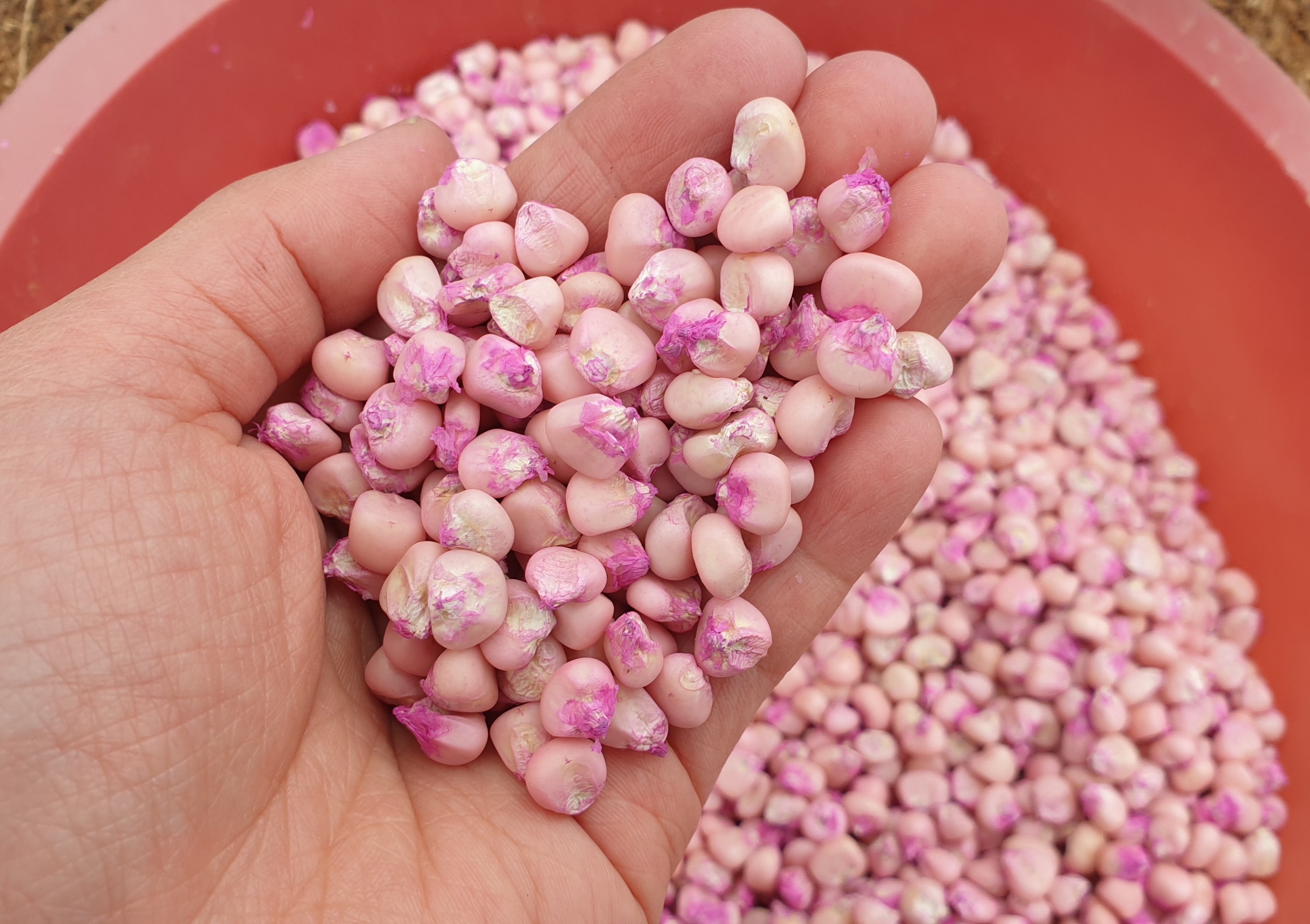 분홍색깔인 이유가 종자가 소독이 된 상태라고 하더군요. 주말에 옥수수 파종 외에 호박 파종 작업도 진행응 했는데 모두 분홍색깔이서 더 놀라지도 않았습니다.
