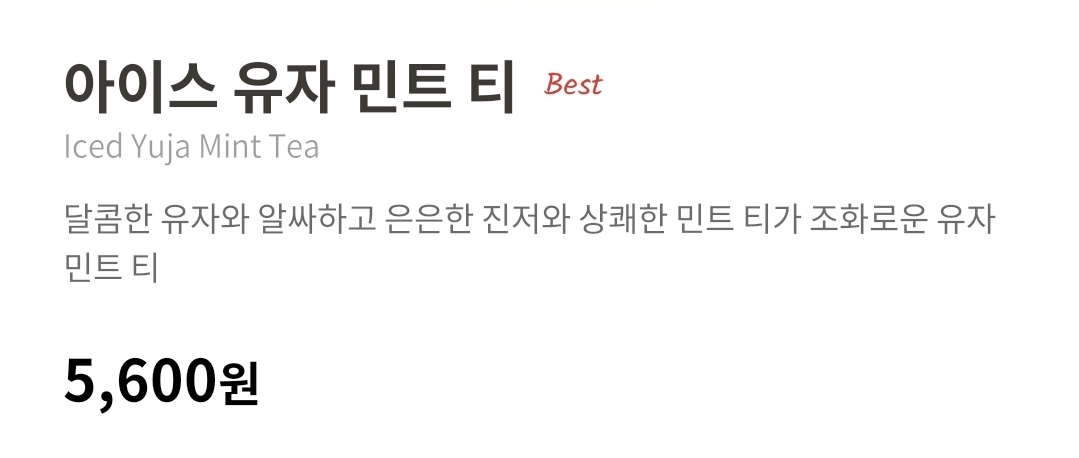 달콤한 유자와 알싸하고 은은한 진저와 상쾌한 민트 티가 조화로운 유자 민트 티로 소개를 하고 있는데요 먹어봐야 진짜 맛을 알겠죠?