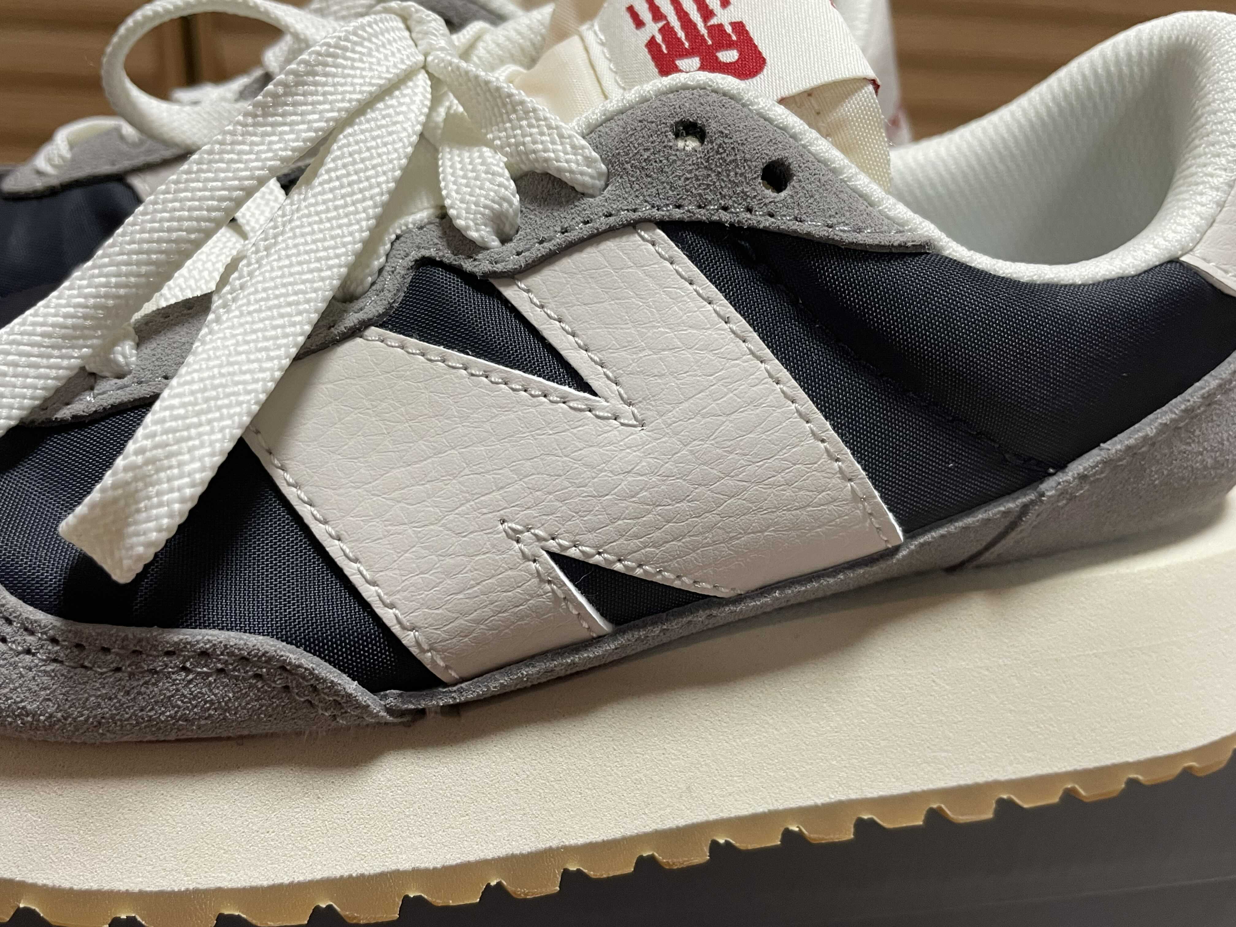 뉴발란스를 상징하는 N 로고가 신발 내외 부분에 가죽으로 붙어 있습니다. 처음엔 N 로고가 커서 이상하다 싶었지만 또 어느샌가 익숙해져서 아무렇지 않았습니다. 그래서 이번에 237를 구매하면서 망설임이 없었던 것 같습니다.