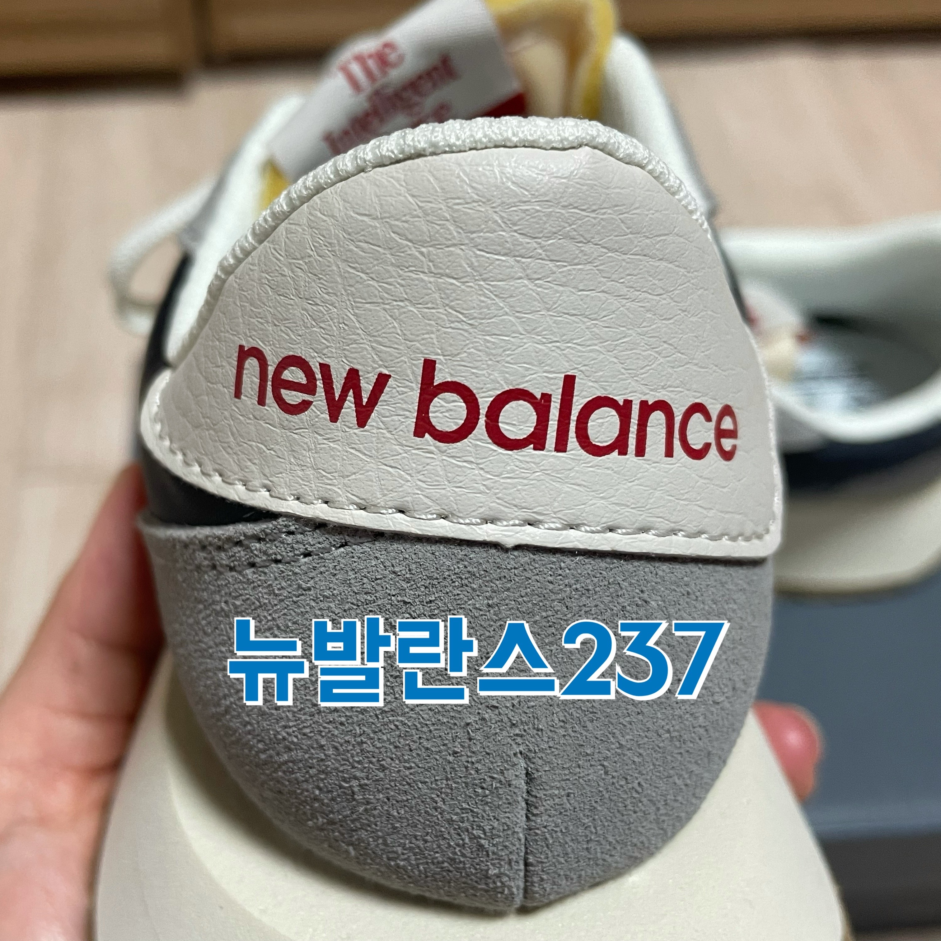 저는 뉴발란스 237 운동화의 뒷모습이 사실 제일 마음에 드는데요, 복고스러운 느낌의 뉴발란스 글씨와 그레이 그리고 은근 살짝 보이는 네이비 색감 조화가 참 이쁘다고 생각해요!