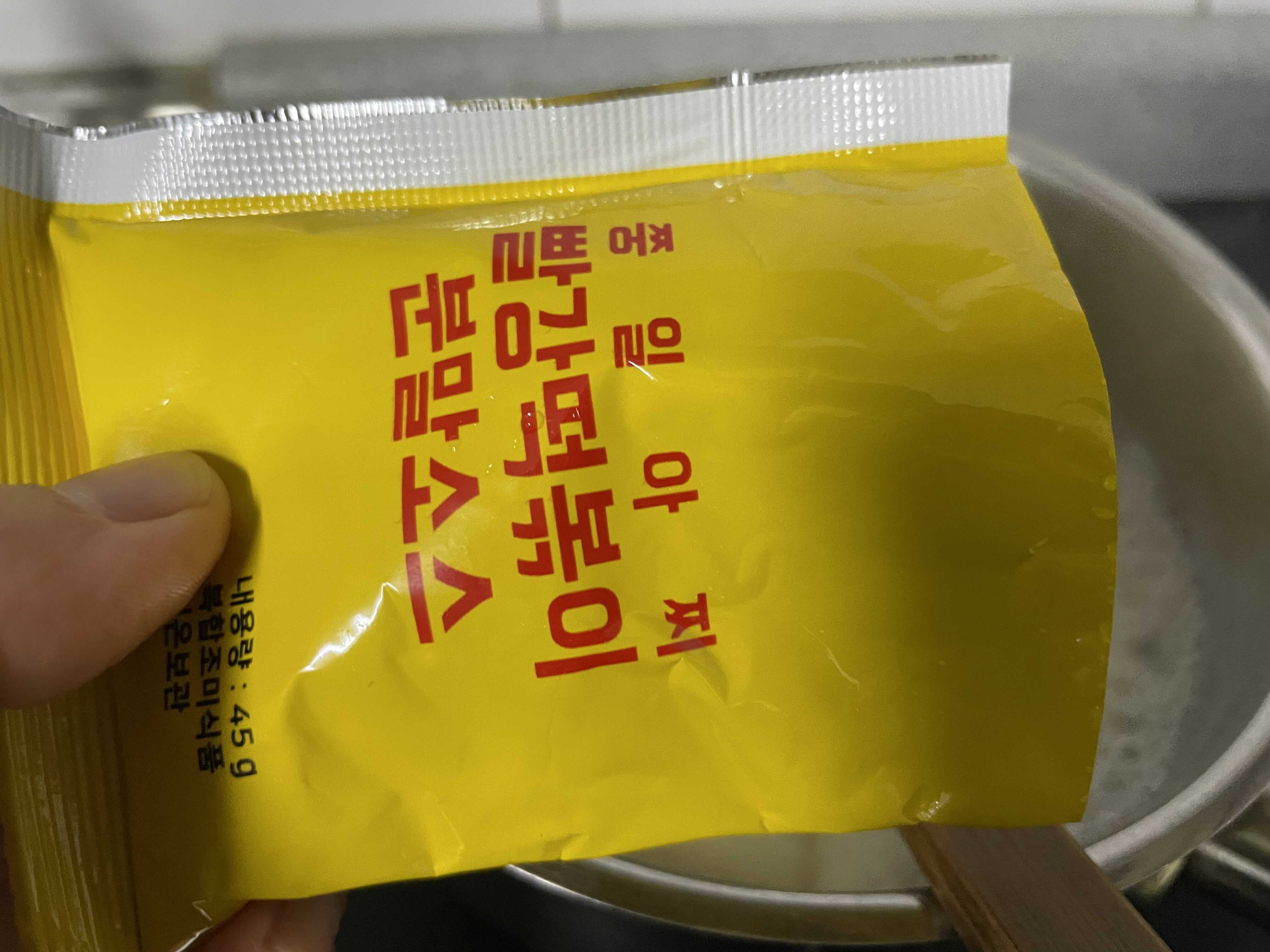 밀떡이 부풀어 오른 모습이 보이시죠? 이 상태가 되면 분말소스를 넣어주시면 됩니다.