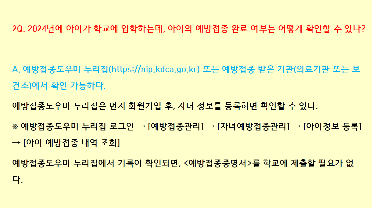 2. 초·중학교 입학생 예방접종 완료 확인 방법