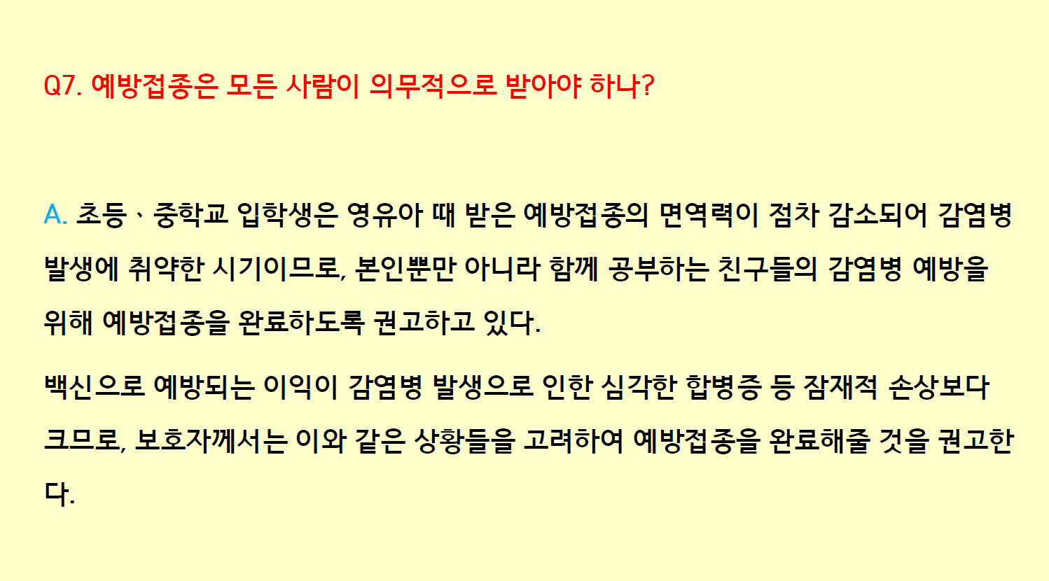 7. 예방접종 의무 여부
